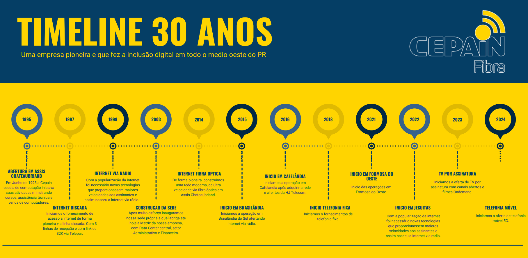 Com 28 anos de experiência fornecendo internet e 30 anos de atuação no setor de tecnologia, a Cepain se consolida como referência em qualidade, inovação e compromisso com seus clientes.